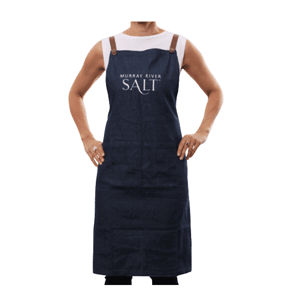 Why not look fancy whilst seasoning with Murray River Salt? Our new Murray River Salt apron is perfect for anyone who likes to get a little messy in the kitchen. With the addition of the brown leather straps and front pockets this apron looks classy and will fit all sizes.