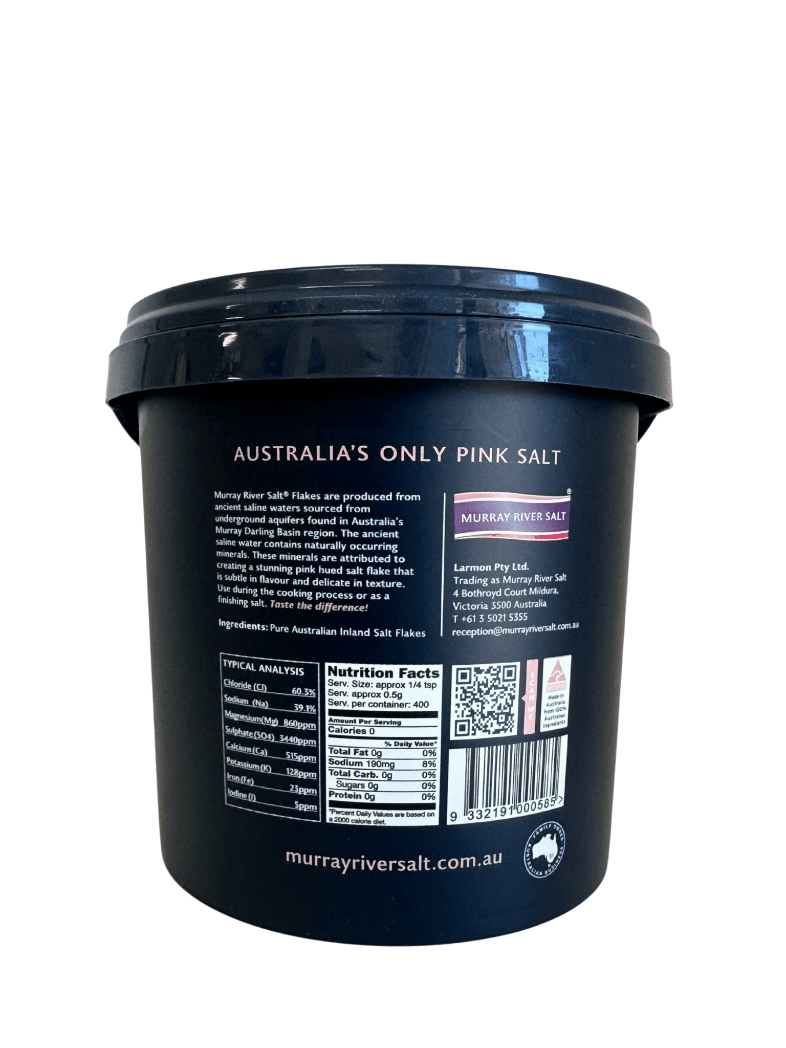 You get 500g of Murray River Salt ‘Salt Flakes’ in a sealed bucket that can be opened and then re-sealed again!