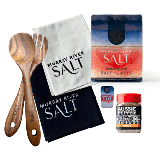 The perfect gift for food lovers and home entertainers. The Murray River Salt & Serve Gift Pack brings together premium Australian flavours and stylish kitchen essentials in one beautifully presented box.